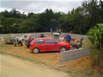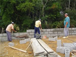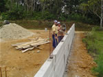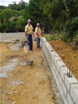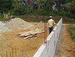 ASPECTOS DA CONSTRUÇÃO DO MURO DA ÁREA ONDE SERÁ CONSTRUÍDO O MEMORIAL DA FAMÍLIA JOCHEM. LÖFFELSCHEIDT, ÁGUAS MORNAS - SC.