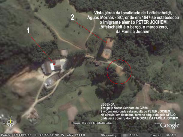 A Diretoria da AFAJO – Associação da Família Jochem no Brasil – articula a construção do MEMORIAL DA FAMÍLIA JOCHEM , na localidade de Löffelscheid, Águas Mornas, em Santa Catarina. Ele pretende ser digno de todos nós, motivo de orgulho, de satisfação, de sentimento de pertença, de identificação de todos os membros da Família Jochem e ponto de visitação dos estudiosos e simpatizantes da imigração alemã.
