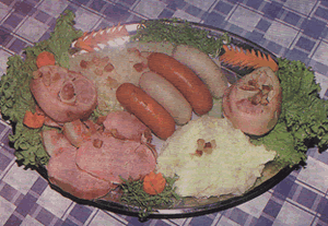 Eisbein, ou joelho de porco, com seus acompanhamentos.